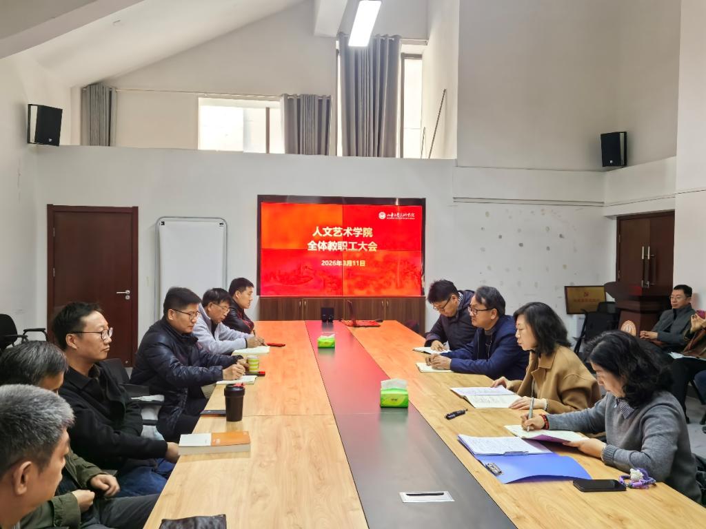 2026年3月11日,人文艺术学院本学期第一次全体教职工大会召开,学院党政领导班子及全体教职工参加会议,会议由学院院长张长征主持。