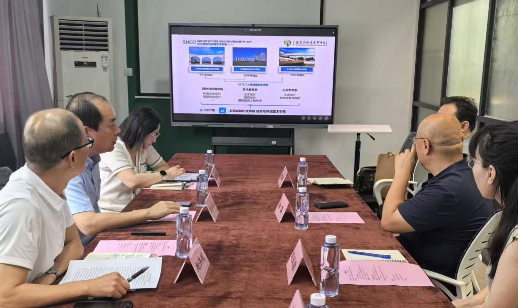 为加强校际交流,借鉴先进办学经验,进一步提升专业建设水平与人才培养质量,2025年10月13日上午,山东工艺美术学院人文艺术学院院长徐磊率学院教师刘玉雪、刘国庆一行三人,赴上海城建职业学院建筑与环境艺术学院进行访问交流。