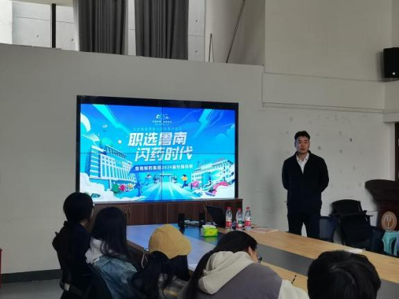 为促进毕业生高质量充分就业,搭建学生与用人单位的交流平台,2025年10月29日,人文艺术学院举办2026届毕业生就业指导暨秋季校园招聘宣讲会。山东博盛教育科技有限公司、山东佳丰进出口有限公司、北京中公教育科技有限公司山东分公司及鲁南制药集团股份有限公司四家企业代表莅临现场,2026届本科毕业生参会。