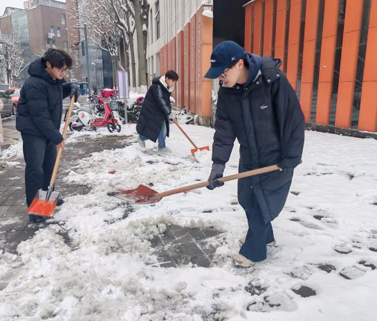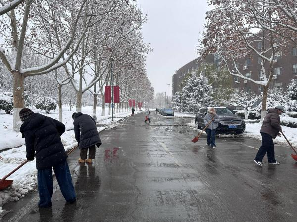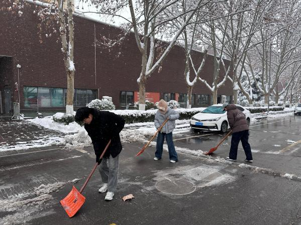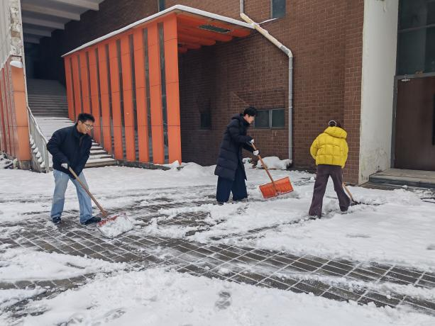 结合气象预报提示,学院提前部署,组织师生制定扫雪除冰行动方案,为后续行动做好充分准备。活动中,学生党员、团员及入党积极分子们不畏严寒、奋勇争先,手持铁楸、扫帚等工具,前往学校主干道路进行扫雪除冰行动,他们分工明确、默契配合,在实践中展现了责任意识和奉献精神,为师生提供了安全、畅通的出行环境。